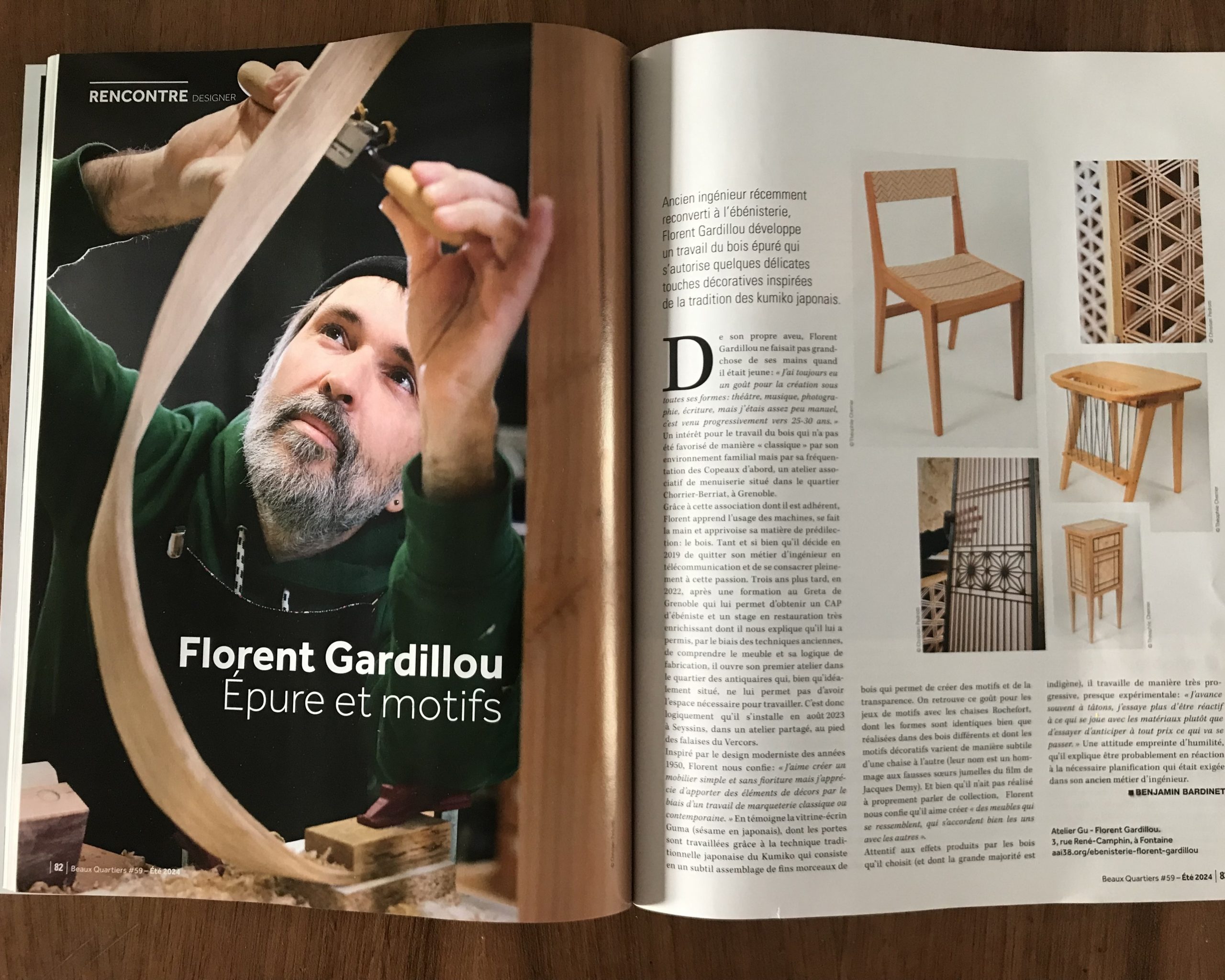 Je m’appelle Florent Gardillou, ancien ingénieur reconverti au travail du bois par la force de l’évidence. J’ai sauté le pas en 2020 en passant mon CAP ébéniste aux compagnons du tour de France. Après plusieurs expériences fort enrichissantes en restauration de meubles anciens, je me suis orienté vers ce qui m’anime depuis toujours : la création de mobilier d’art sur-mesure.