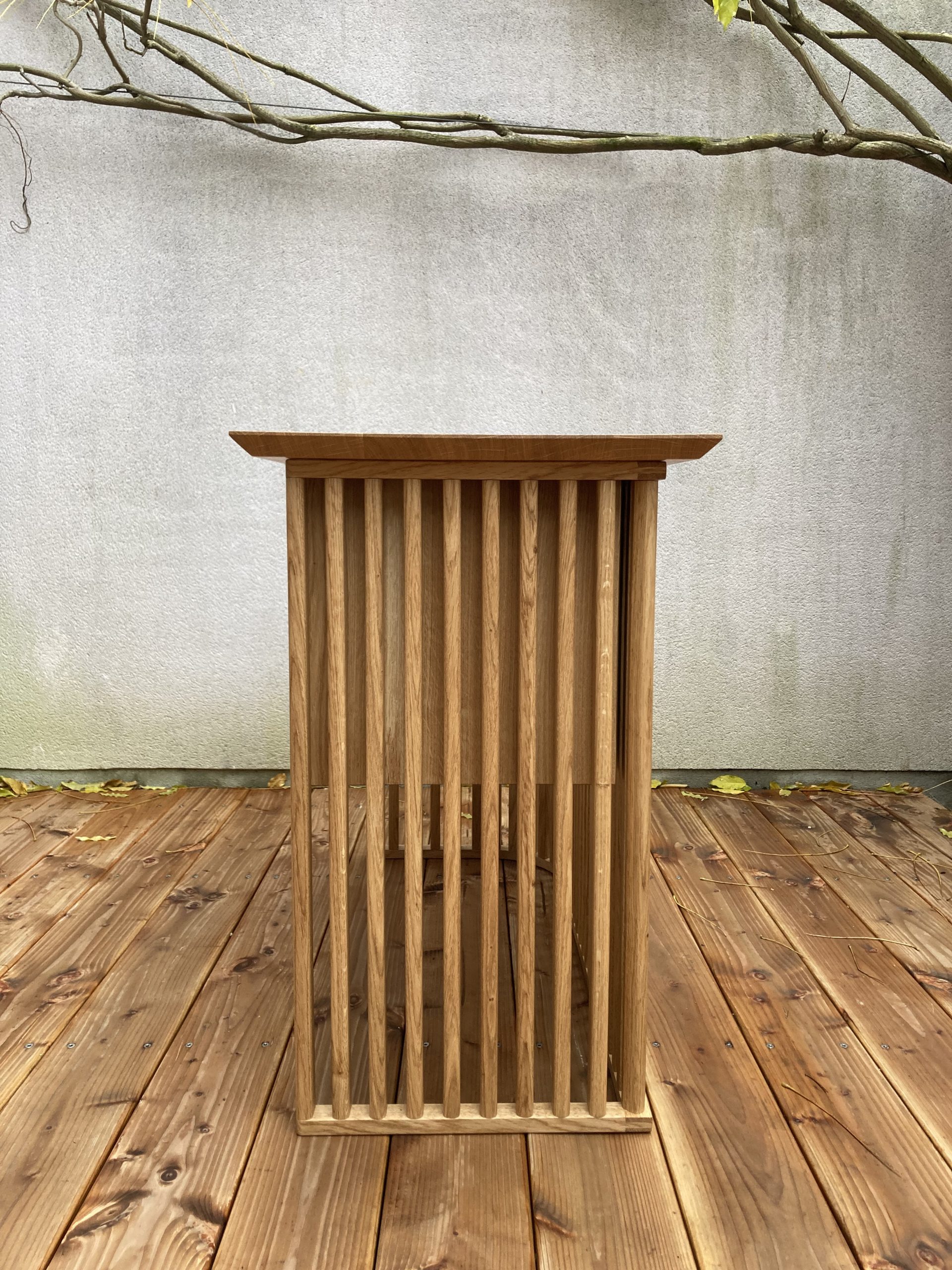 Hêtre, érable et wengé Dimensions : 38 x 25 x 70 cm (L x l x H)